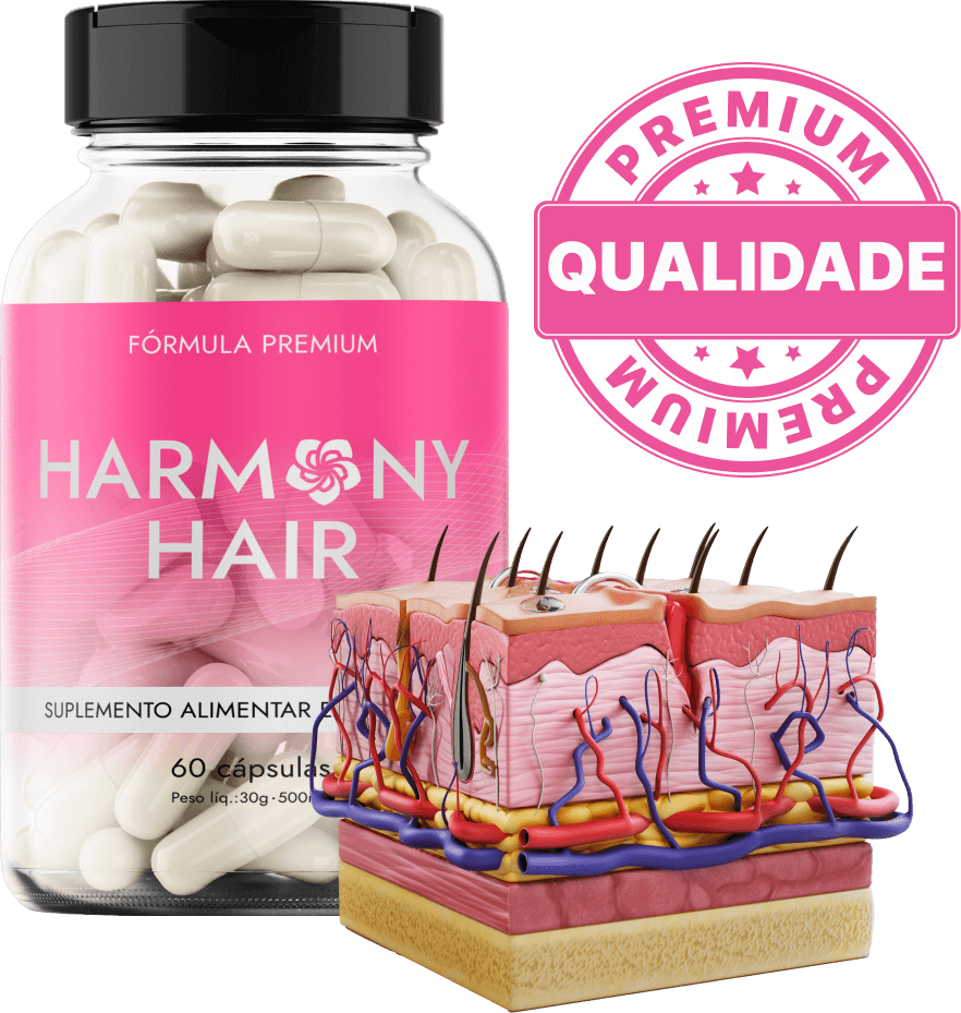 Harmony Hair é diferente de tudo que você já utilizou antes, isso porque é a primeira vez que a ciência consegue juntar tantos ativos poderosos em uma só composição: Ácido Pantotênico + Biotina + Ácido Fólico + Vitaminas.